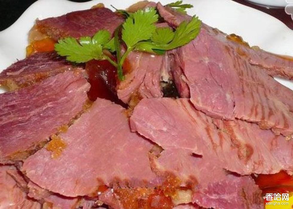 辛集咸驢肉,色紅味美,軟而不爛,香而不膩,鮮而不腥。每天下午先把要煮的驢肉放在冷水里浸泡,每小時換一次水,直至水清肉白后放入煮鍋,浸煮十分鐘左右,再換水加花椒、大料、小茴香三味調(diào)料大火烹煮,待肉熟后撤火,用石塊兒壓好鍋蓋,然后慢火悶煮一夜,第二天早晨將煮熟的咸驢肉撈出,食時順肉切條,再切成片后即可食用。