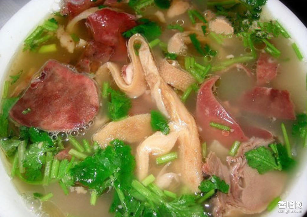 輔料:羊肺50克、羊肥腸(大腸)50克、羊心50克、羊肚50克、香菜100克。