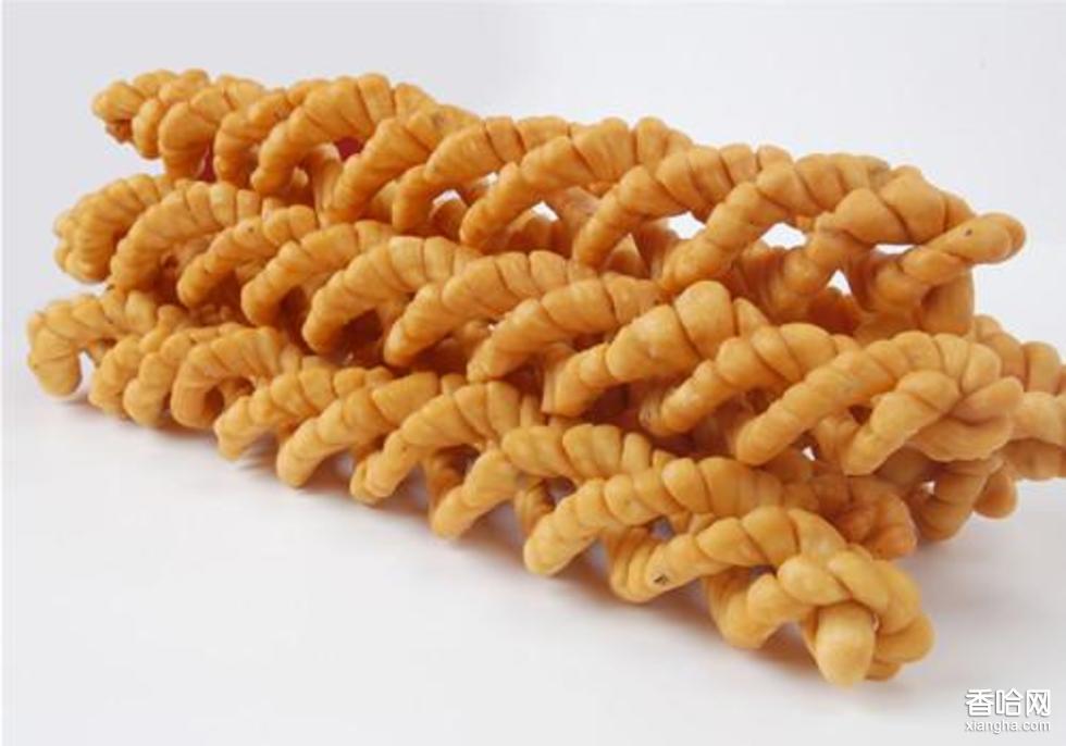 3.然后入油鍋炸(油溫應(yīng)保持在100~120℃之間),炸熟后撈出、放冷,即為成品。