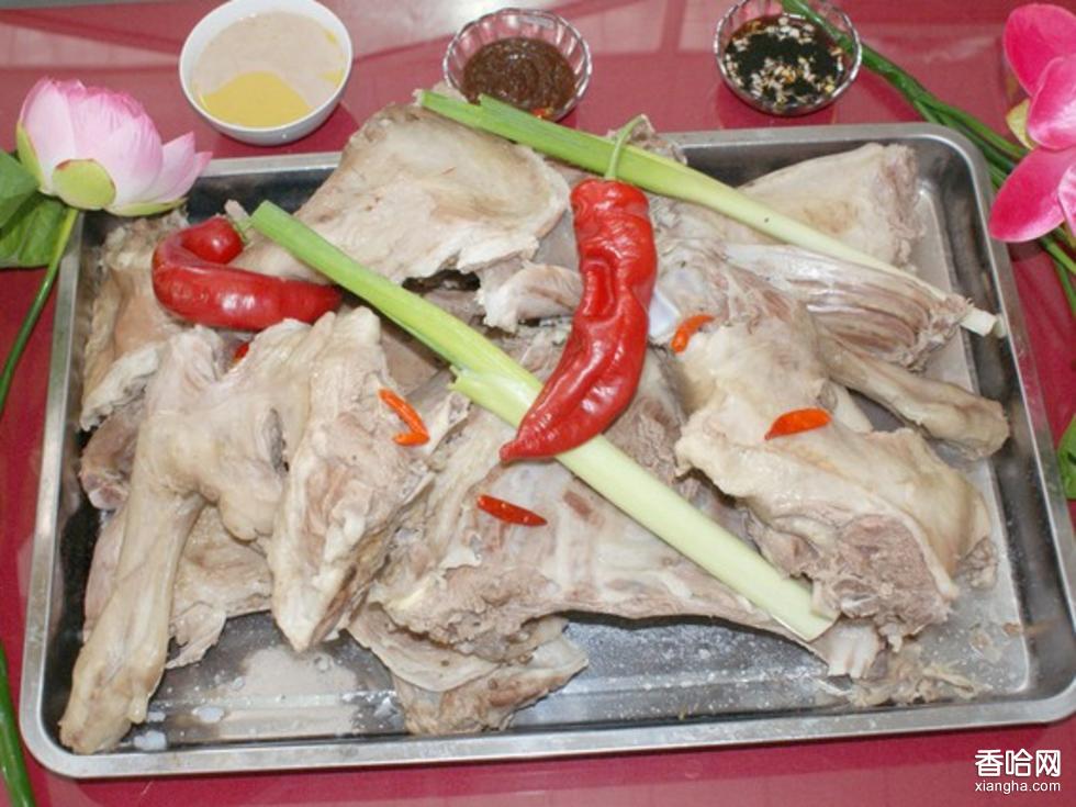 煮食方法不同內(nèi)地,按關(guān)節(jié)將羊肉帶骨剃成數(shù)十塊放入白水鍋內(nèi),不加鹽及任何佐料,用大火燒煮,使肉保持原汁原味。只要肉一變色,肉里微有血絲即撈出,裝盤(pán)上席,羊肉鮮而不膻,令人百吃不厭。