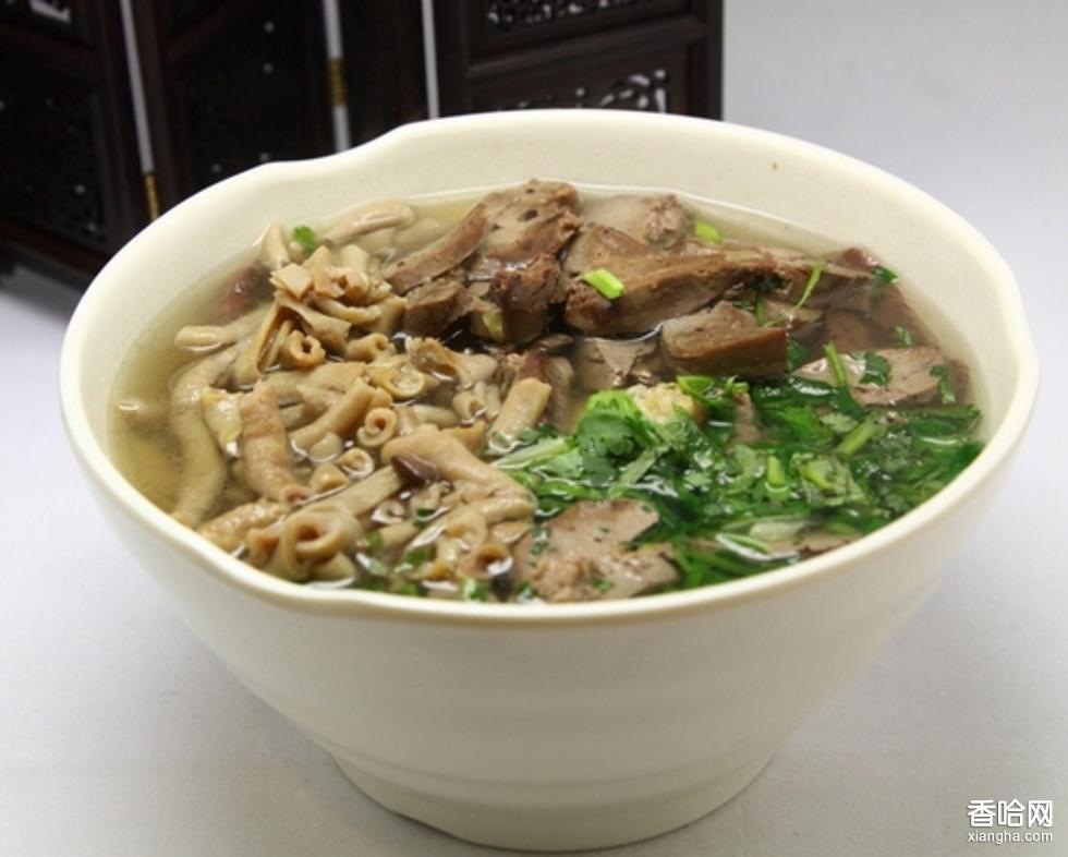 原湯雜碎:將羊雜碎洗凈,下鍋煮好,連湯帶水一起品嘗,味在鮮美清淡。