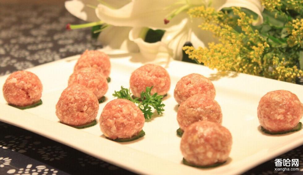 3. 用手把拌好的羊肉搓成小丸子,放進(jìn)盛水的鍋中,用文火把羊肉丸浸熟,見丸子浮起水面即可;