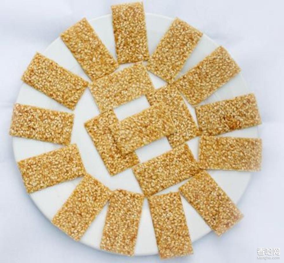 將上等面粉拌上糖,加入油、蜜水和成團(tuán)狀,然后搟成皮、涂上蜂蜜、撒上芝麻,上鍋烘烙。成品色微黃,酥脆香甜,吃來(lái)滿口余香。
