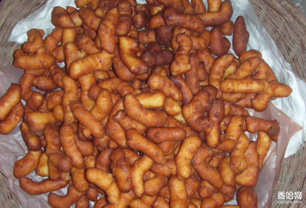砍三刀,又名油食兒、油布袋,色呈金黃,綿甜利口,是流傳于山西太行山區(qū)的河北平山、井陘及山西五臺(tái)山一帶人春節(jié)期間的漢族面食小吃之一。因炸制時(shí),為使麻油滲入其中,要在上面砍三刀,故稱“砍三刀”,又因其吃起來(lái)油香四溢,故又稱“油布袋”。