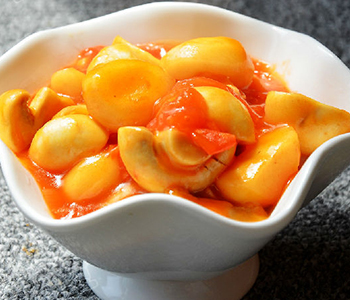 準(zhǔn)備材料:西紅柿、荸薺、口蘑、番茄醬、白糖、水淀粉、雞精、蔥花、蒜瓣