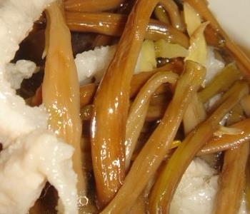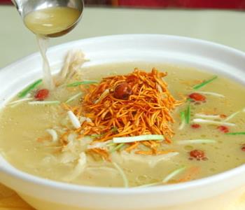 做法:首先要把黃花菜洗凈在沸水中焯燙,再放到冷水中浸泡1到2個小時,擠干黃花菜中的水分。把香菇泡發(fā)后擠去其中的水分切成絲狀,把豬瘦肉同樣切成絲再用少許鹽、料酒、淀粉拌勻上漿待用。在砂鍋中放入1000毫升的清湯,然后用中火把湯煮沸,撒上少許鹽,把豬肉絲倒到鍋里面,等鍋沸滾后,把油末撇去,再加入香菇絲煮沸滾3分鐘后,最后加入黃花菜,淋上麻油即可出鍋。
