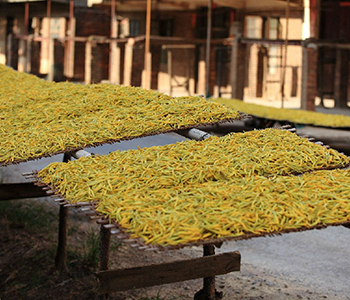 把新鮮的黃花菜用開(kāi)水焯一遍,然后撈出來(lái)瀝干,接下來(lái)就可以直接放在太陽(yáng)底下曬了,曬過(guò)的網(wǎng)友建議直接在水泥地上曬比較好,因?yàn)樗嗟乇粫裰?,溫度?huì)升很高,讓黃花菜更容易曬干。而且大家一定要選擇在穩(wěn)定的大太陽(yáng)天來(lái)曬黃花菜,如果中途遭到雨淋可不是什么好事,黃花菜很容易就會(huì)壞的。