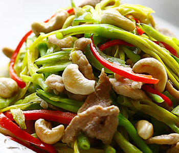 5、加鹽翻炒后再放入腰果,最后炒熟即可。