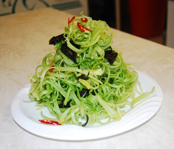 3、三種絲放入大碗中,加入鹽、蒜末、香油、生抽、米醋等拌勻,最后撒入熟白芝麻即可
