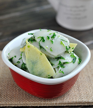 5、烹飪菱角菜時(shí)不宜加入蒜、姜、料酒來(lái)調(diào)味,以免破壞薺菜本身的清香味。