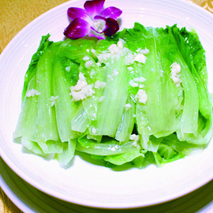 蒜蓉生菜:除了具有清炒生菜的功效外,還有殺菌、消炎和降血糖的作用,甚至還可以補腦。生菜含有豐富的維生素,具有防止牙齦出血以及維生素C缺乏等功效。大蒜有解毒、行滯、健胃的功效,對脘腹冷痛、痢疾、泄瀉、肺癆、百日咳、感冒、瘧疾等癥有一定的食療作用。