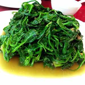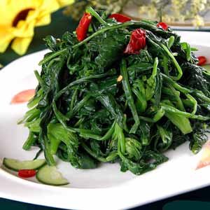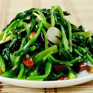 菠菜500克,精鹽7克,蒜泥10克,熟花生油 50克