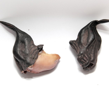 如果這時候殼還沒辦法拿下來,那么把另外那只角也掰一下,一個完整的菱肉就出來了!