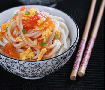 5)煮面條的過程中記得要略放一點(diǎn)鹽,如果是夏天吃可以撈出來后放在涼開水里浸冷,那樣做也可以避免面條黏在一起。把面盛于碗中,上面澆上西紅柿雞蛋鹵,喜歡香菜或者小香蔥的可以撒上點(diǎn)香菜末、蔥末提香,吃時(shí)攪拌均勻。