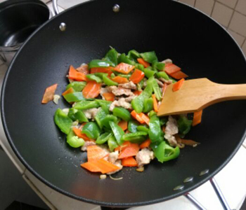 3、喜歡軟嫩口感的,可以適當(dāng)延長辣椒進鍋的時間,可以添加少許的清水。如果不是,就放入略煸炒即可。