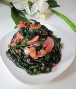 食譜材料:蒜泥、紫莧菜、雞精、鹽等