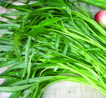 材料:空心菜、鹽、蒜、雞精、醋、辣椒