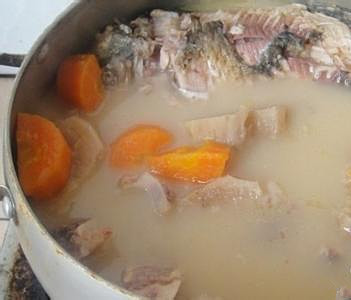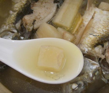 5、把粉葛、鯪魚、姜、棗一齊放入鍋內(nèi),加清水適量,武火煮沸后,文火煲三小時(shí),湯成調(diào)味即可。