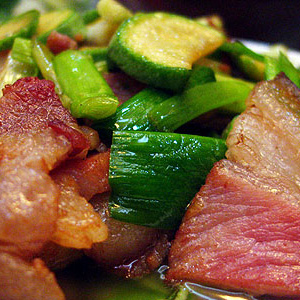 4、可以搭配其他食物炒。像西葫蘆燴西紅柿這道家常菜,紅紅綠綠的看著就有胃口。還有西葫蘆炒木耳、剁椒培根炒西葫蘆、西葫蘆炒肉片、西葫蘆炒豆干等等都是非常不錯(cuò)的家常菜。