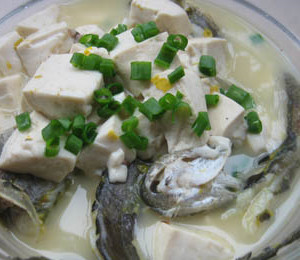 主料:鰱魚一條;輔料:鹽水鹵豆腐2大塊,蔥、姜、蒜、八角、郫縣豆瓣醬適量。調(diào)料:花生油、鹽、料酒、味精適量。