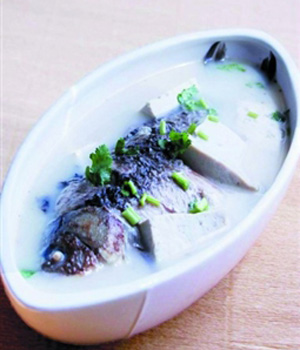 鯽魚豆腐湯是一道漢族名菜,屬于粵菜菜系,口味咸鮮可口,鯽魚具有很好的催乳作用,配用豆腐,益氣養(yǎng)血、健脾寬中,豆腐亦富有營(yíng)養(yǎng),含蛋白質(zhì)較高,對(duì)于產(chǎn)后康復(fù)及乳汁分泌有很好的促進(jìn)作用。