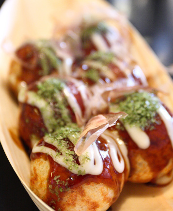2、醬汁章魚燒。在章魚燒表面涂上醬料,成為主流。