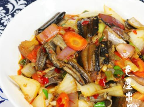 先把黃鱔剝皮開膛洗凈,用熱水去掉黃鱔外皮黏液,準(zhǔn)備好各樣佐料,油燒熱后,先把小蔥、姜片下鍋試油,放入微量鹽、食用糖,接著黃鱔入鍋,加入肉桂、八角等等干料,翻炒約5分鐘,注入開水適量,放入花椒(用紗布扎袋)、枸杞、條參、當(dāng)歸等藥物,大火燉10分鐘,加入蔥段、蒜塊、干辣椒、金針、拳菜、豆筋等等配菜,小火煲30分鐘,加入鹽調(diào)整咸淡,滴少許白酒去除腥膻,放入切好的青椒絲,加入小磨油,裝盤出鍋。