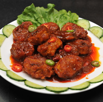 3、鍋內(nèi)留少量油,爆香蔥、姜、蒜、辣椒,加入醋、糖、醬油、味精、淀粉、水調(diào)成汁,淋在魚(yú)上即可。