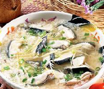 粳米100克,青魚200克,大蔥5克,姜3克,鹽4克,味精2克,植物油5克,香油2克
