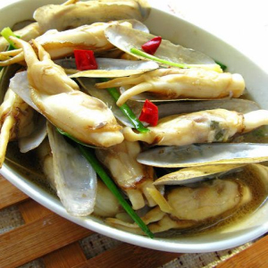 蟶子味道鮮美,形態(tài)美觀,古人曾贊譽(yù)它“美人種子市蟶秧”,將蟶子比喻成美人種子是不過分的,因?yàn)樗献鳛槊廊说乃袟l件:苗條、白皙、柔弱??偢杏X吃多了也會變美。蟶子的做法很多,以下介紹一種簡單又美味的做法。