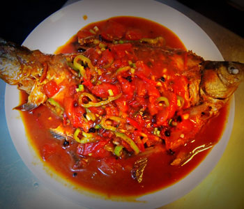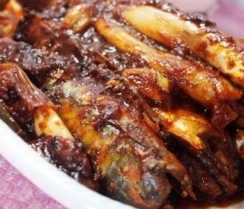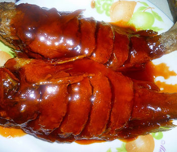 材料:青魚、番茄醬、姜、蒜、白糖、鹽