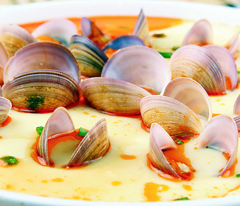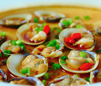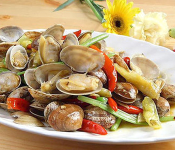桑拿蛤蜊因器皿的不同可以將蛤蜊煮熟也可以氣熟。煮熟就是將玻璃鍋或者沙鍋燒熱,然后將 N多的鵝卵石用油炸到一定溫度放入鍋內(nèi),把蛤蜊和酒一起倒在石頭上面;氣熟步驟差不多。