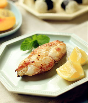 食材:鱈魚2塊,洋蔥 20g,雞蛋1個,杏仁片,檸檬1小塊。