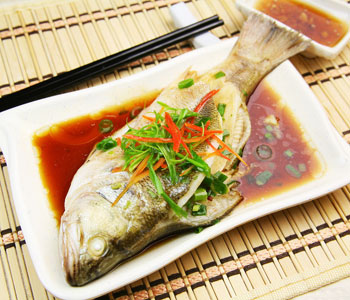 特別是清蒸鱸魚,時間要把握好,而且蒸魚豉油不要放太多,加入一點來調(diào)味和增色即可。