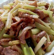 西芹1棵 豬肉50g 蒜頭少許 鹽適量 雞精少許