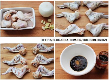 1、雞翅清洗干凈,在正面劃兩刀,翻面也劃兩刀