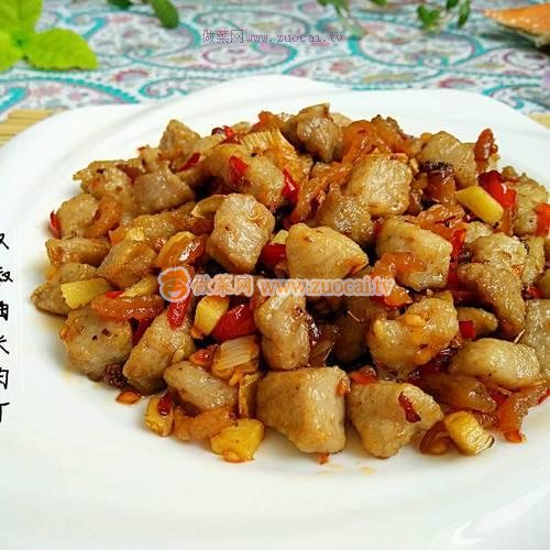 1.新鮮的豬肉切成小拇指蓋大小的丁,我用的是前腿肉。