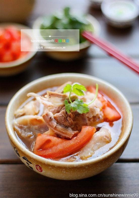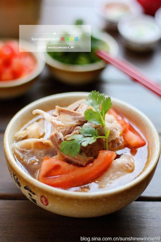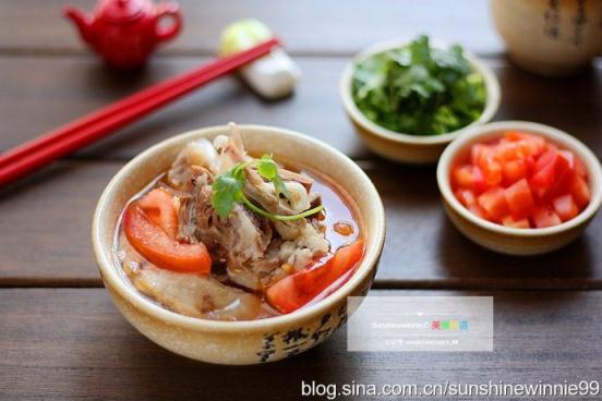 原料:羊肉500克 礦泉水1100ML 番茄2個400克左右 鹽10克 香菜