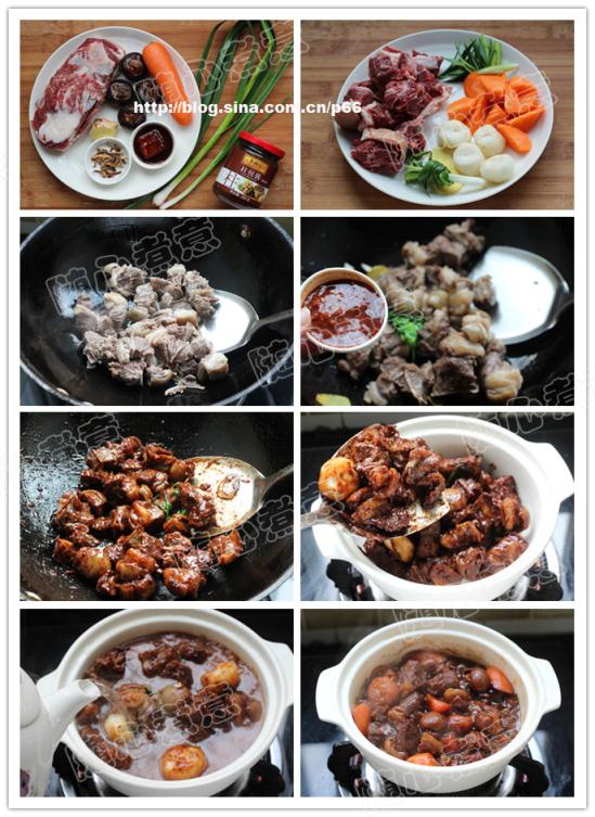 用料:羊肉500g、胡蘿卜1個、馬蹄4個、八角1個、桂皮1小片、香葉2片、沙姜1片、草果1個、青蒜1棵、小蔥2棵、姜1塊、陳皮2g、紅糖10g、柱候醬15g、南乳15g、白酒5ml、生抽5ml、老抽10ml、油15ml