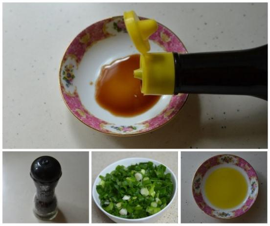 輔料:蔥、油、美極鮮醬油、黑胡椒,少許。