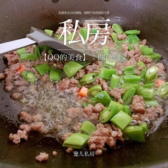 第二步:加入扁豆翻炒至扁豆變色,都知道扁豆做不熟是有毒的輕者難受惡心嘔吐,重則需要去醫(yī)院洗胃,所以扁豆好吃也是要做熟的,且不可扁豆沒熟的情況下品嘗咸淡,品嘗也可以不要咽下去哦。