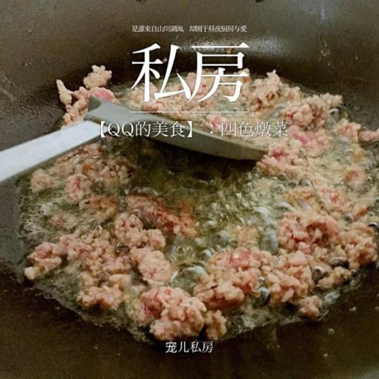 第一步:鍋里放油,油七八分熱下入肉末翻炒熟透。