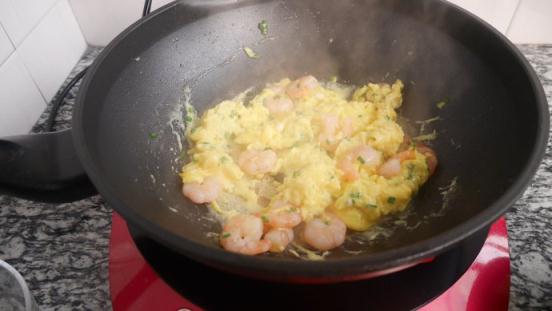 9.蝦仁倒進(jìn)去拌勻就好了,鮮香嫩滑的蝦仁滑蛋完工