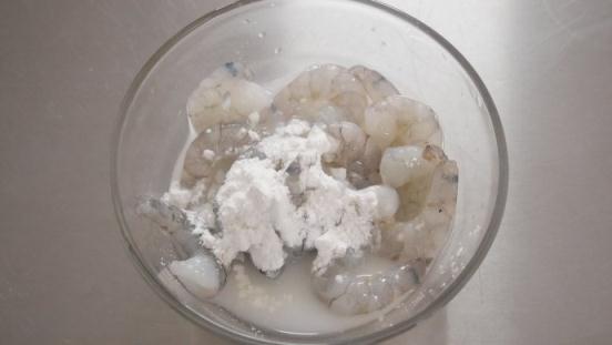 2.蝦仁用黃酒,淀粉抓下,這樣口感會(huì)很嫩而且去腥