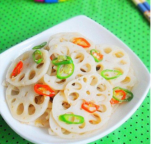 新鮮的蓮藕非常脆嫩,藕的營(yíng)養(yǎng)價(jià)值很高,富含鐵、鈣等微量元素,植物蛋白質(zhì)、維生素以及淀粉含量也很豐富,有明顯的補(bǔ)益氣血,增強(qiáng)人體免疫力作用。烹飪時(shí)加上青紅辣椒和蔥花調(diào)味的同時(shí),顏色也是更加的惹人喜愛(ài)。這道菜以清脆和素燴為主,油不宜多放。