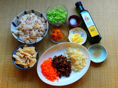 泡發(fā)香菇丁50克 胡蘿卜丁35克 筍丁60克 黃瓜丁100克