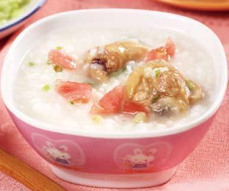 番茄與雞塊一起煮粥,有開(kāi)胃消食的作用,而且可使?fàn)I養(yǎng)更均衡。