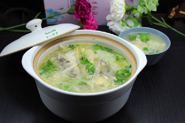2.蘿卜絲要細(xì),可以先煲魚,再放蘿卜絲;