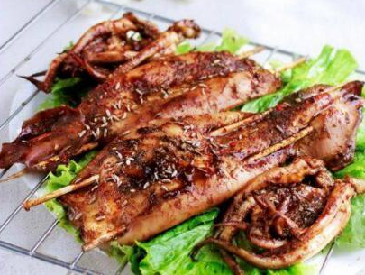 5.用錫紙將魷魚蓋好烤箱預(yù)熱220度,中層烤先烤8分鐘后取出