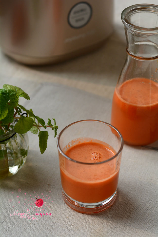 把胡蘿卜和蘋(píng)果二者結(jié)合起來(lái),既取了胡蘿卜漂亮的顏色,又取蘋(píng)果的酸甜口感,將胡蘿卜的特殊香氣掩蓋住,小孩子也能咕咚咕咚喝上一大杯。而蘋(píng)果和胡蘿卜中的果糖,也更適合老年人,而且還有清腸、防便秘的效果。